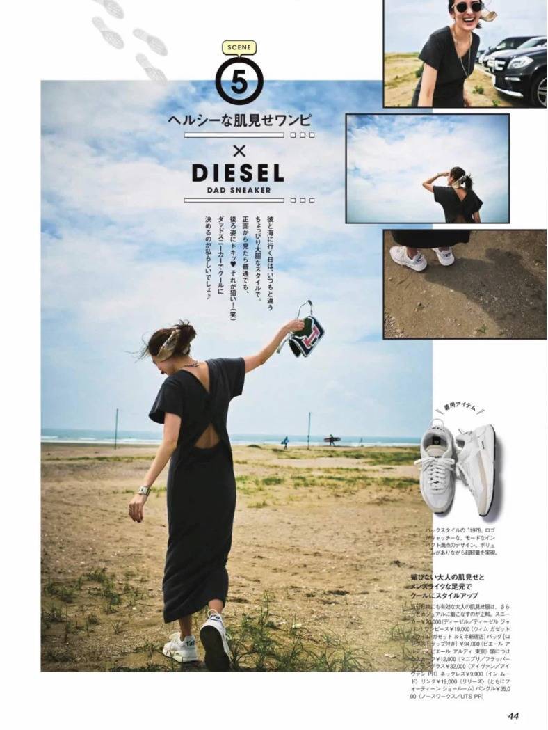 因为日式风格都是比较素雅的单一颜色,所以备一双中性色的运动鞋就能百搭所有裙装。